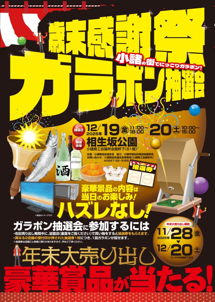 《小諸商店会連合会 主催》歳末感謝祭 ガラポン抽選会を行います!